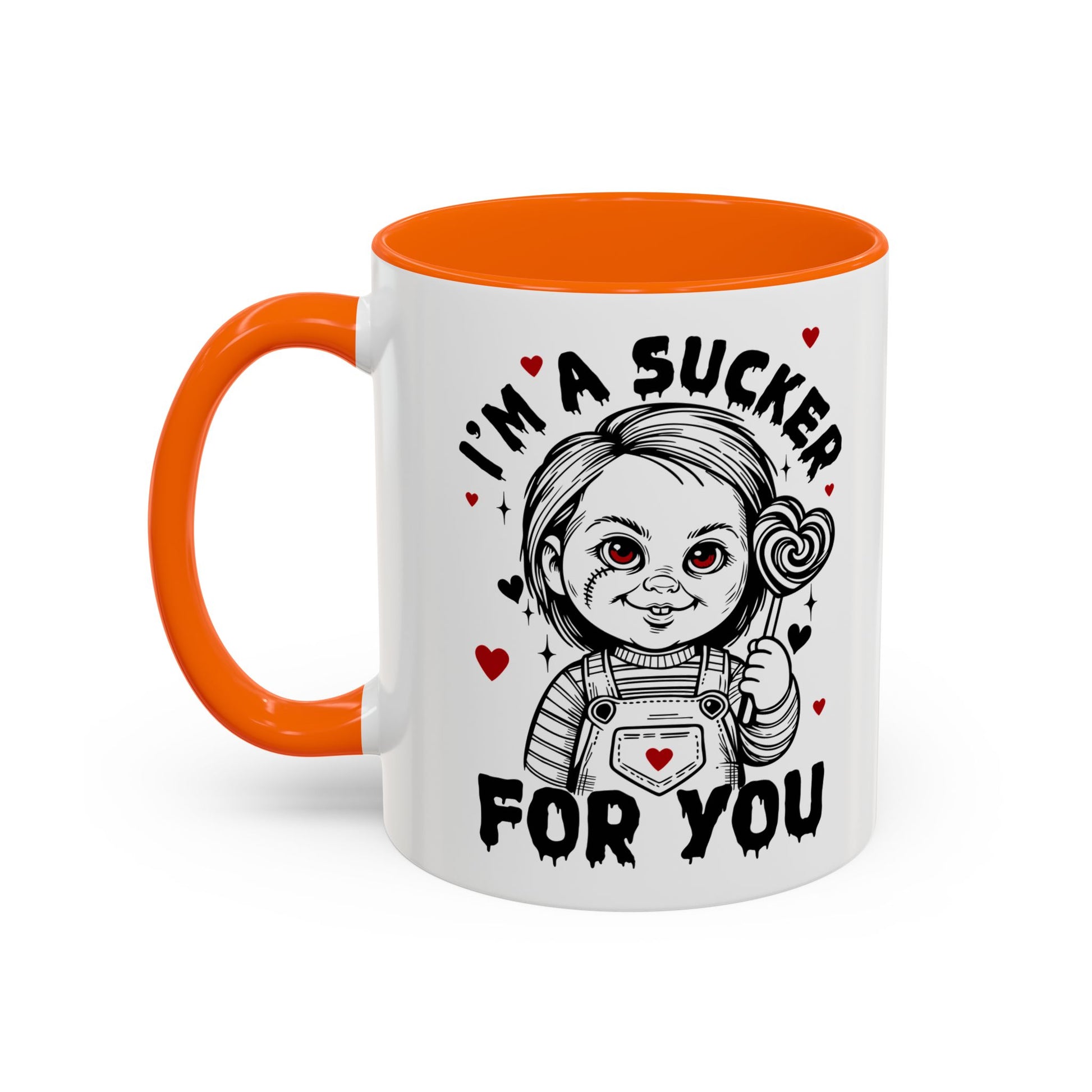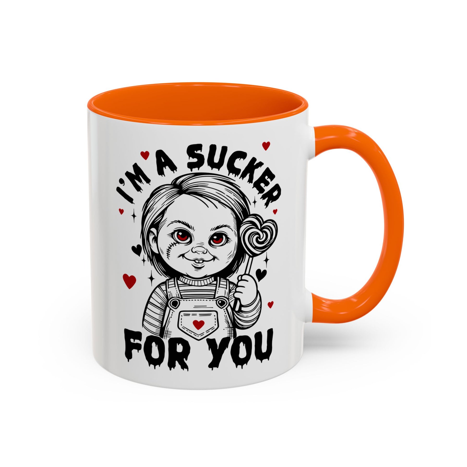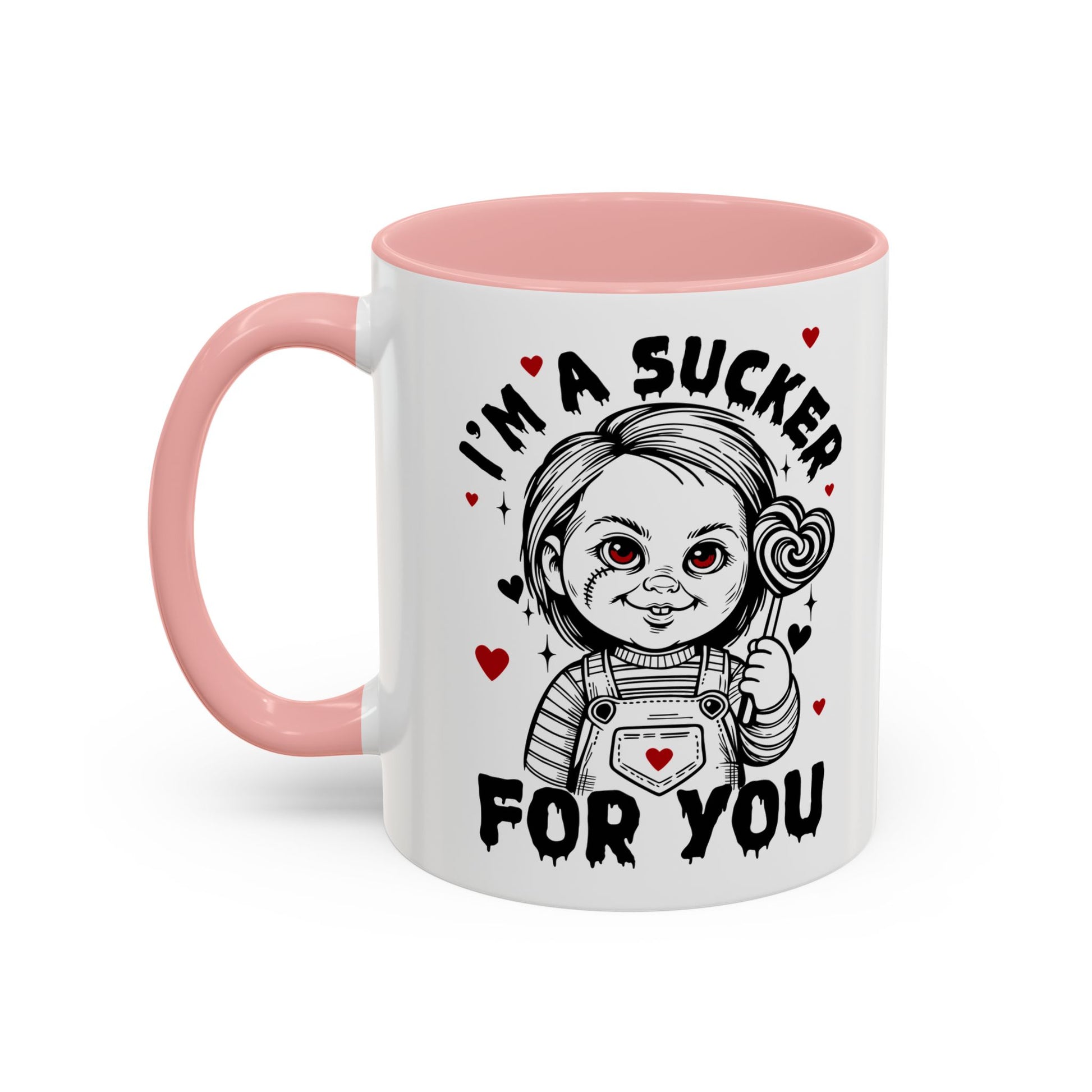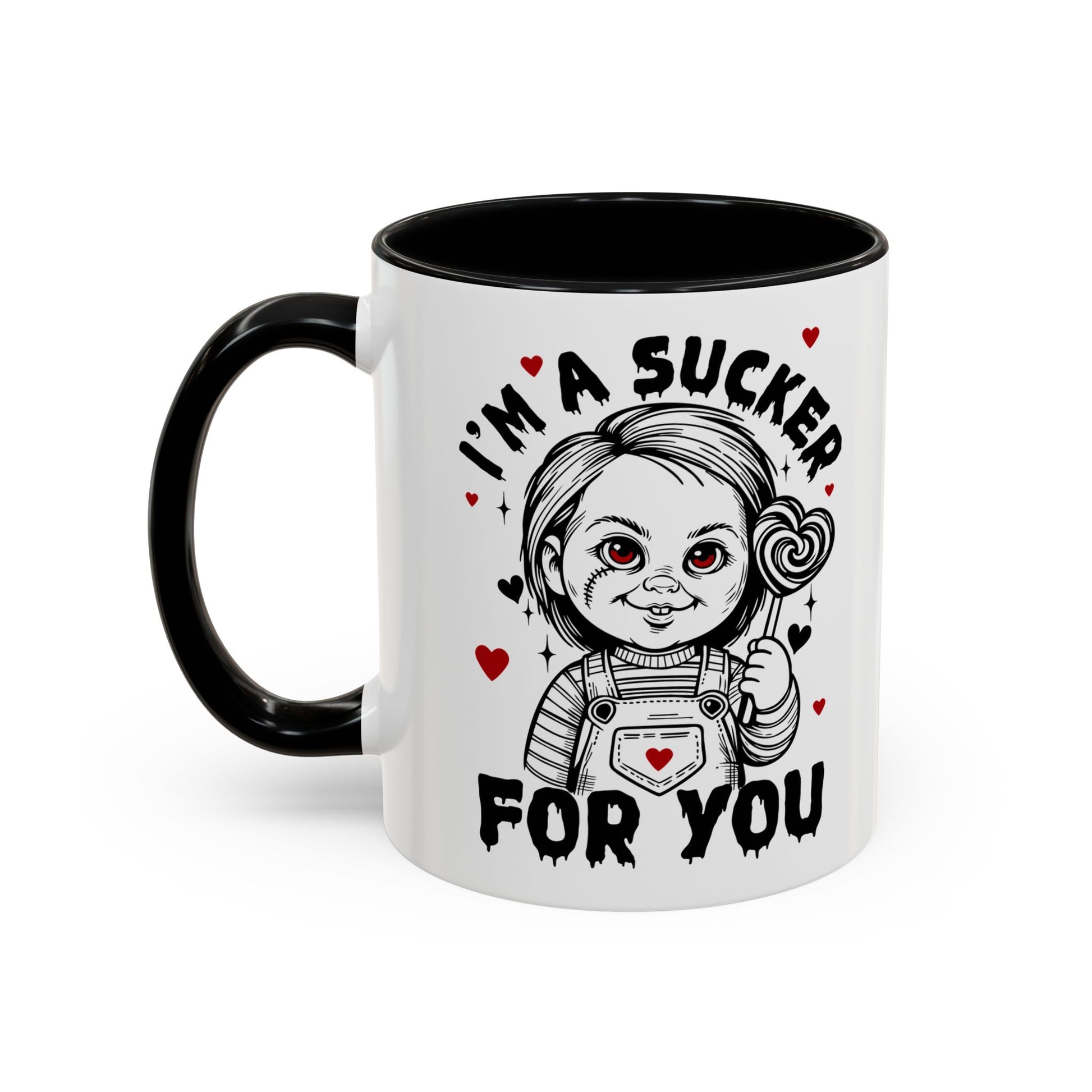 Coffee Mug — "I'm a Sucker For You" Cute Creepy Doll Valentine Accent Mug