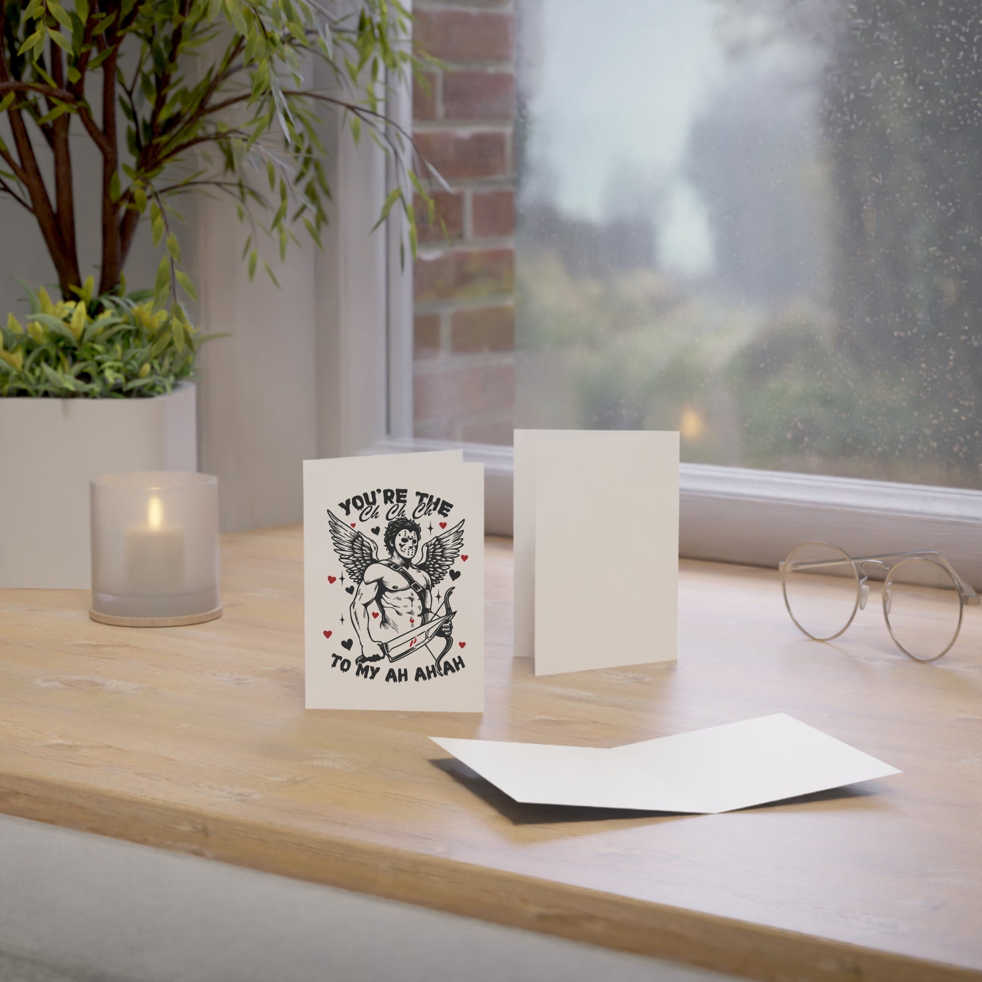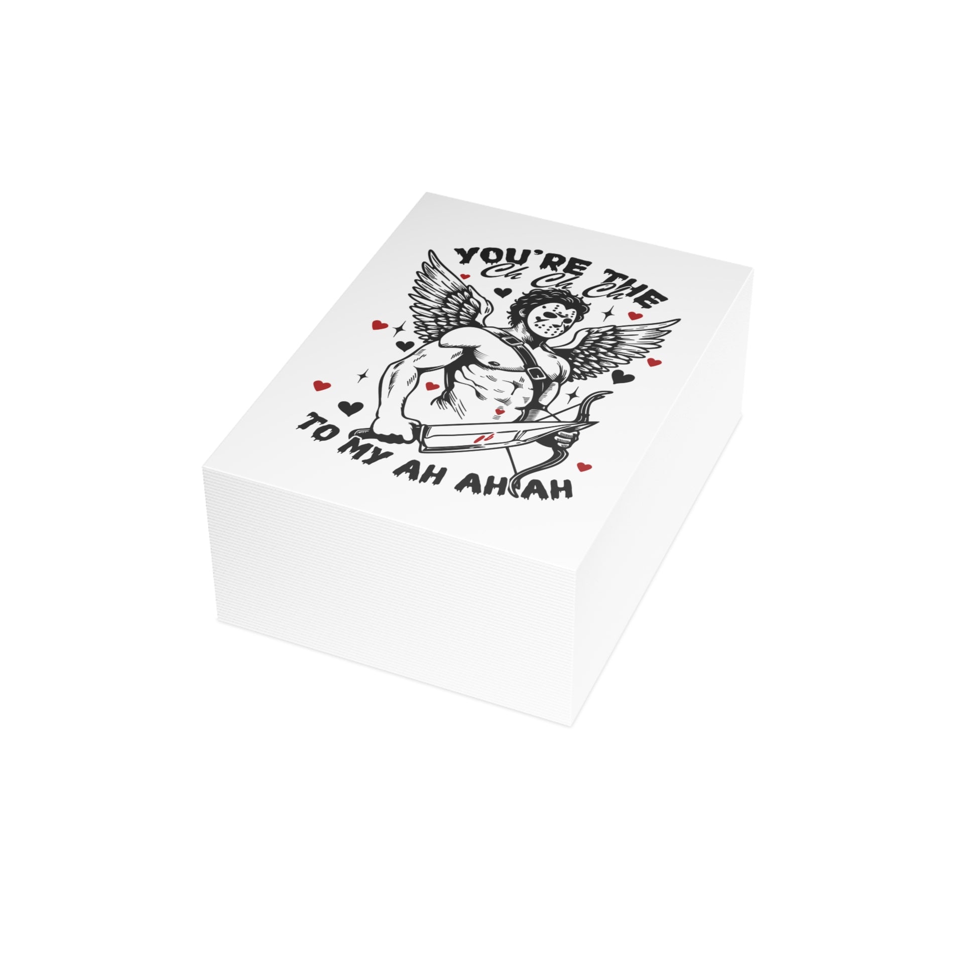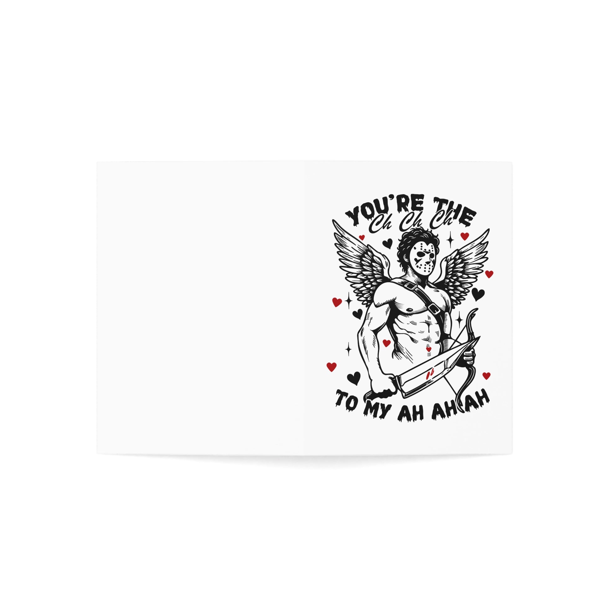 Greeting Card — Funny Horror Cupid Design “You’re the Ch Ch Ch to My Ah Ah Ah” — Valentine’s Day Love Card