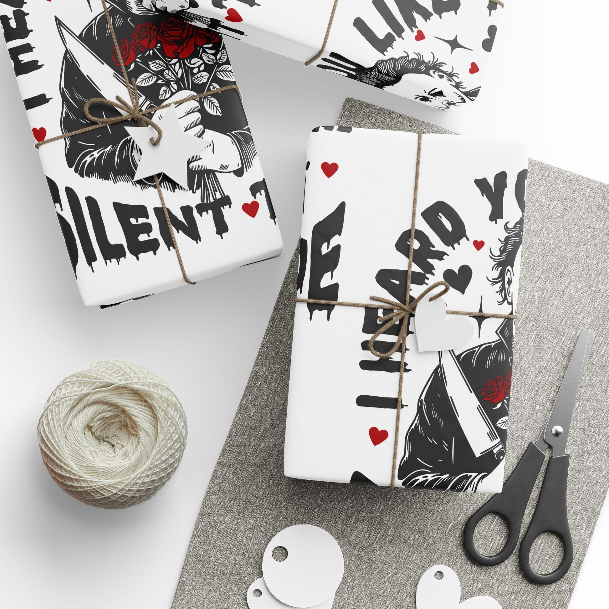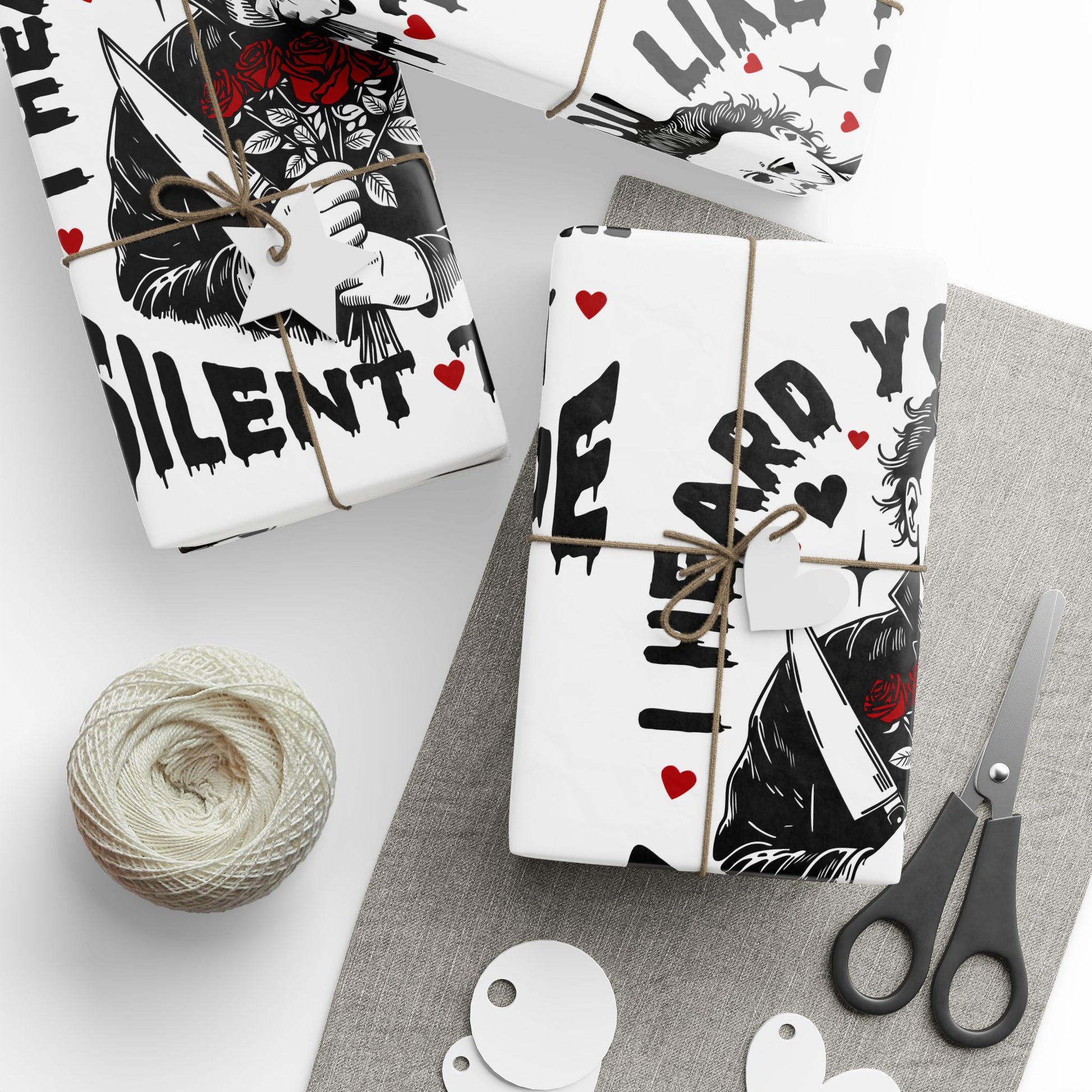 Horror Movie Wrapping Paper — “I Heard You Like the Silent Type” Pattern