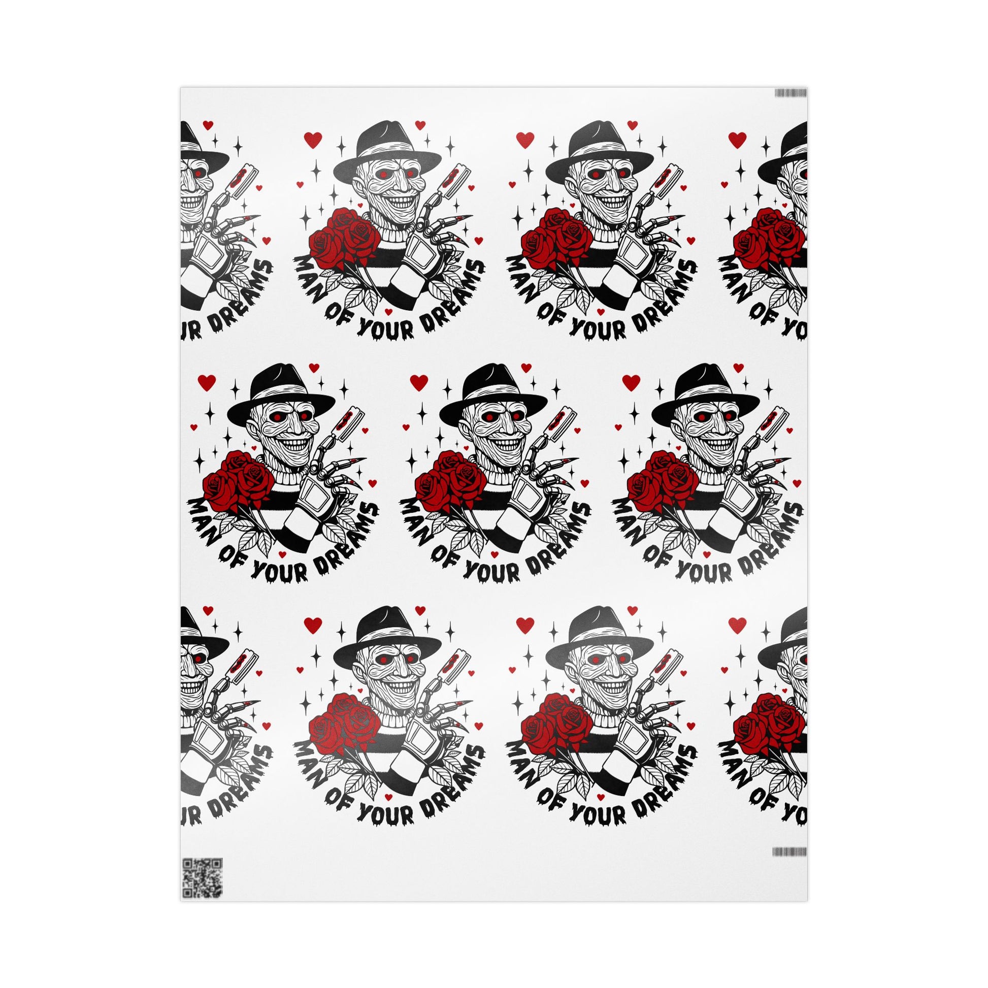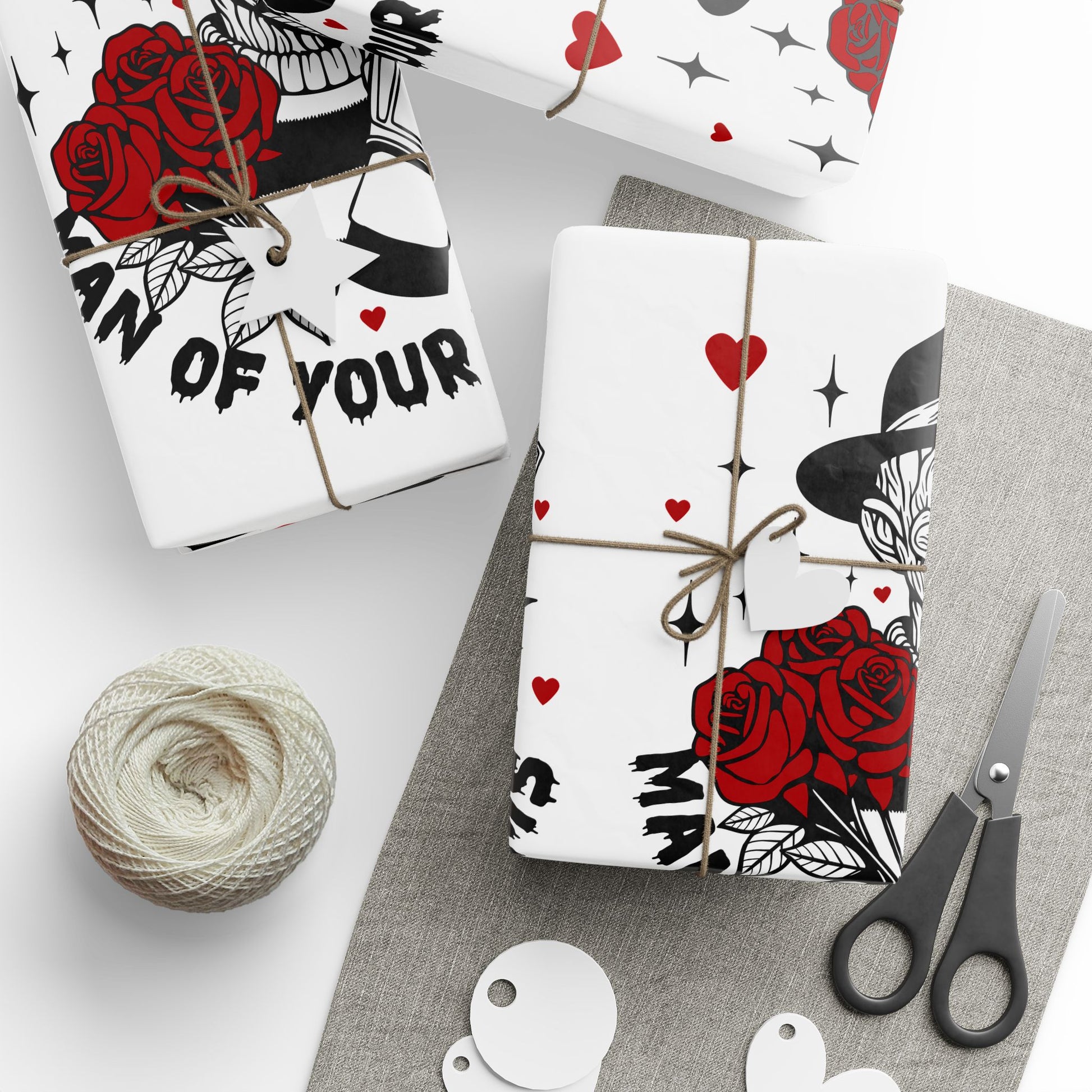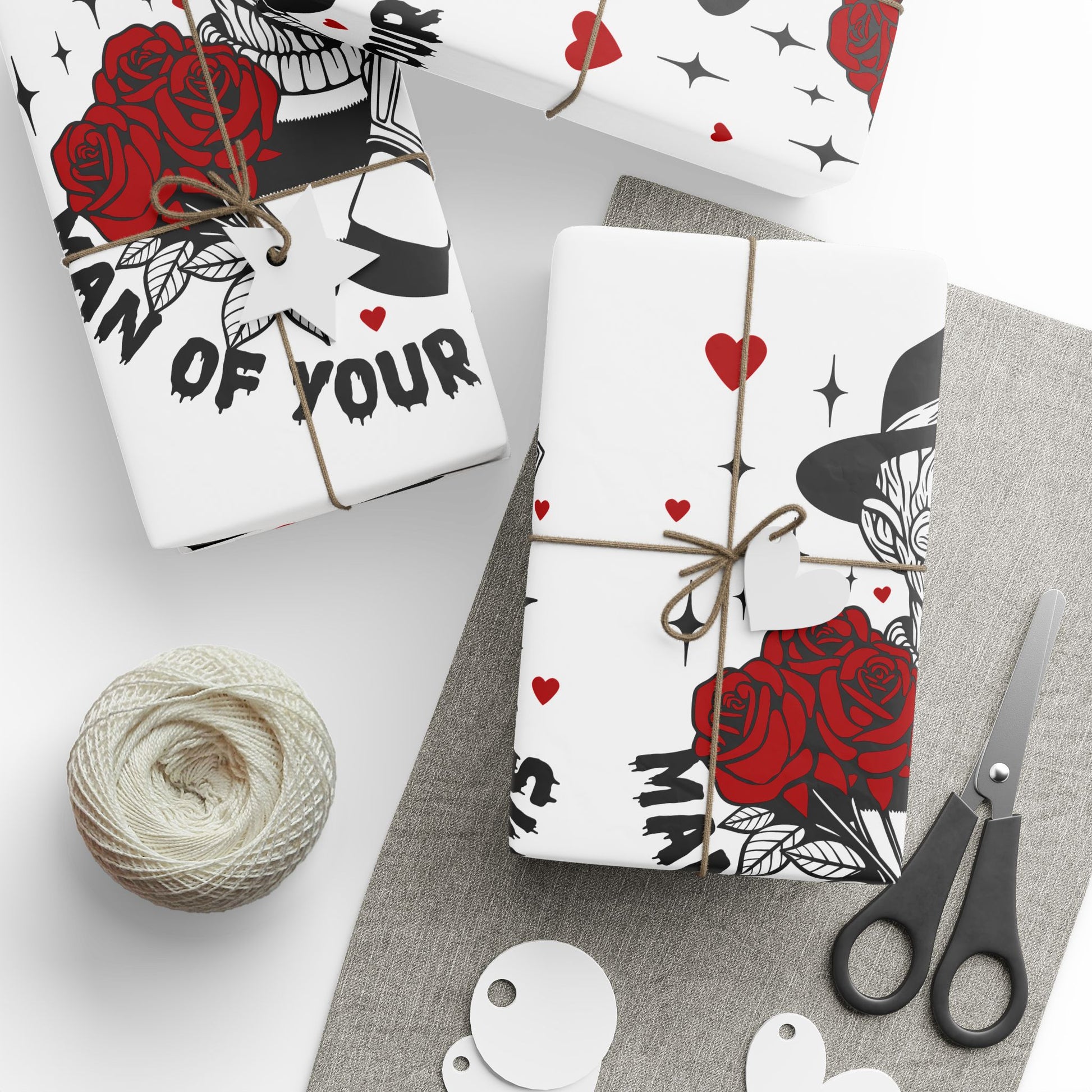 Skull & Rose Wrapping Paper - 'Man of Your Dreams' Gothic Valentine Gift Wrap