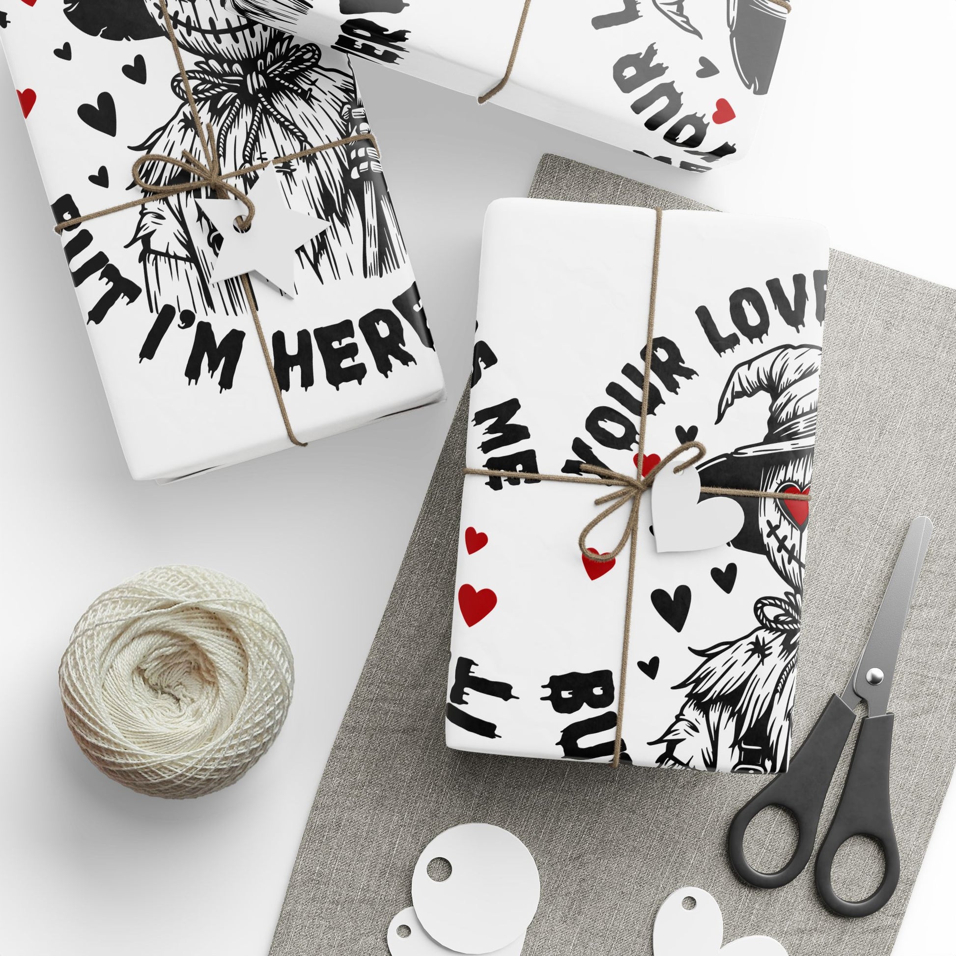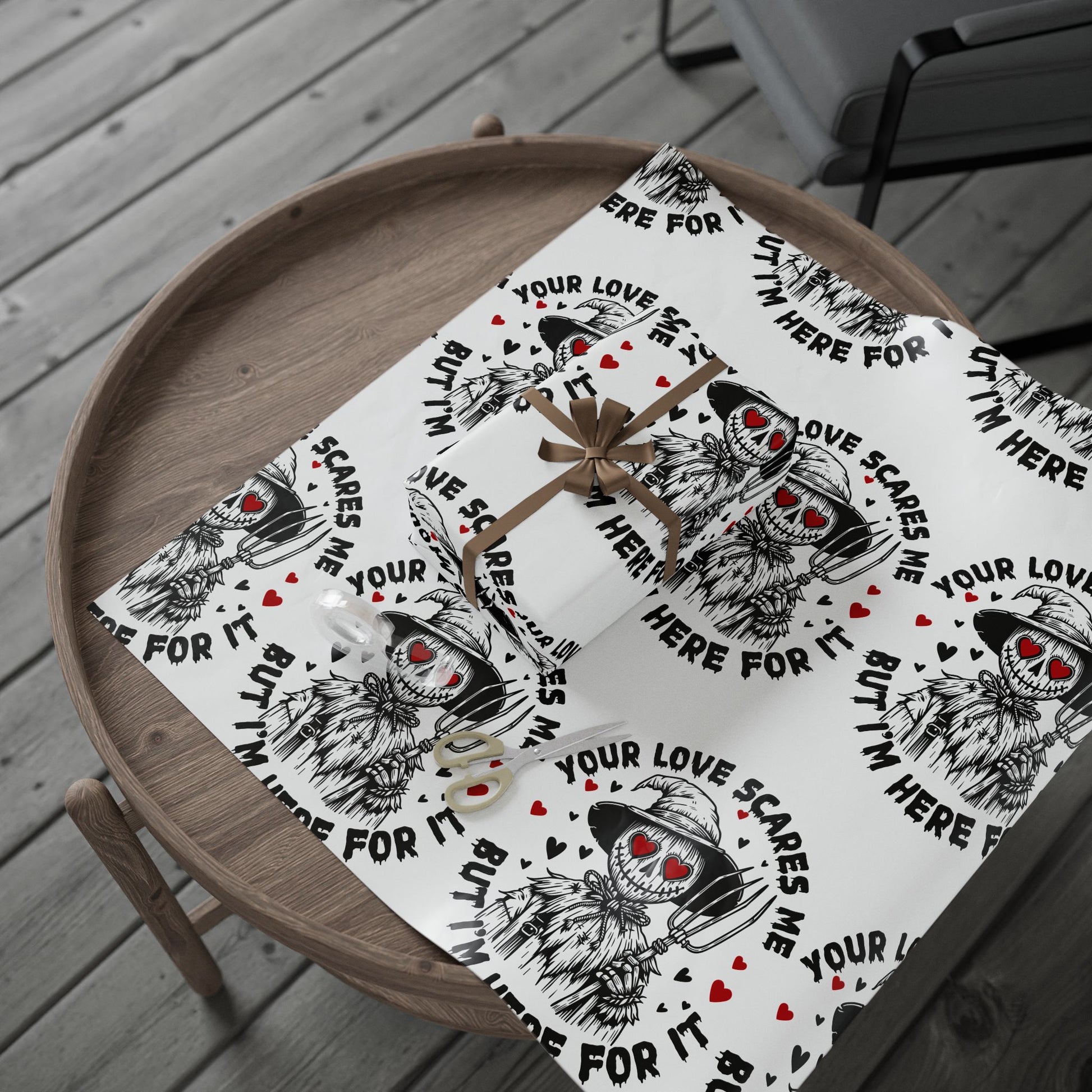 Spooky Love Wrapping Paper - 'Your Love Scares Me But I'm Here For It' Valentine's Gift Wrap